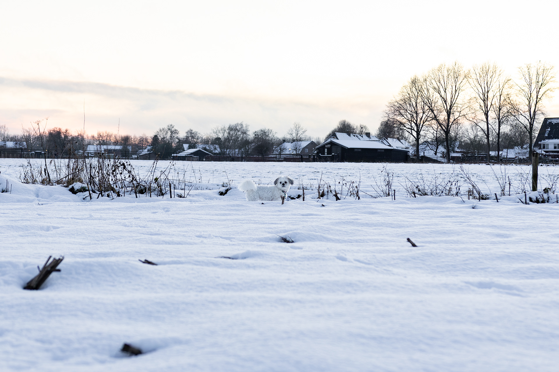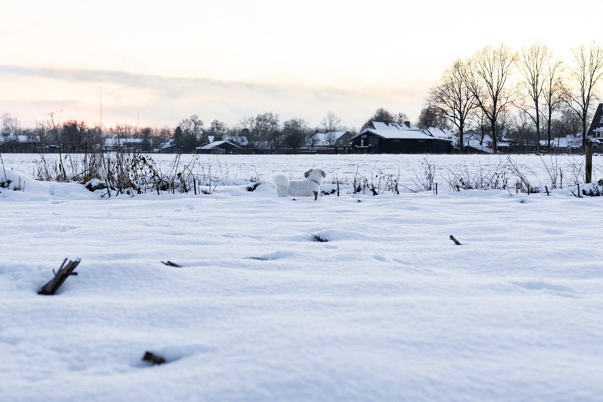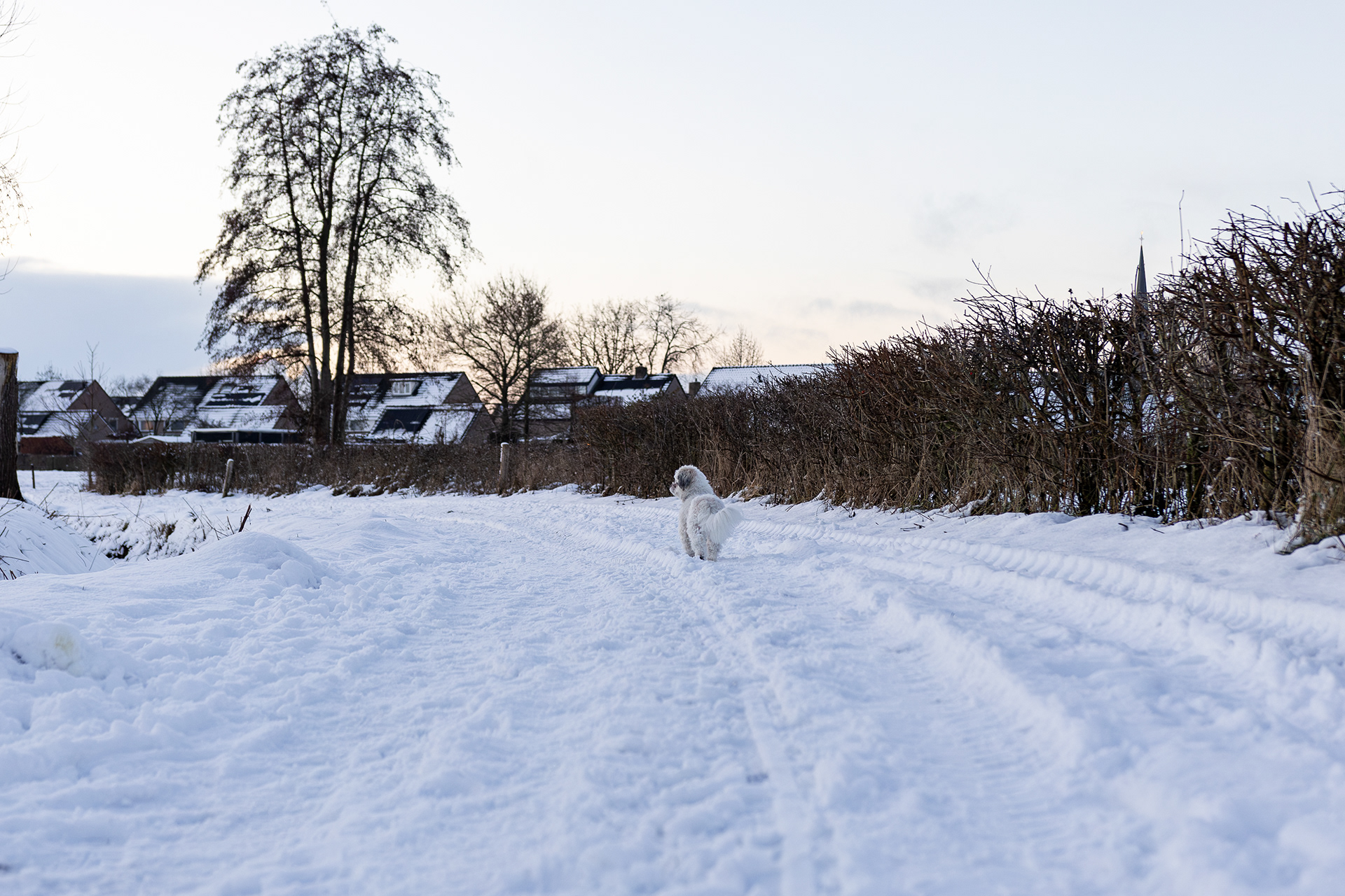 Het heeft gesneeuwd en dan ga je met een witte hond door de witte sneeuw. Dan kom je er wel achter dat je hond minder wit is dan je dacht. Tot je in de nabewerking komt. 📸: Canon R6 Mark II Lens: Sigma 18-35mm F1.8